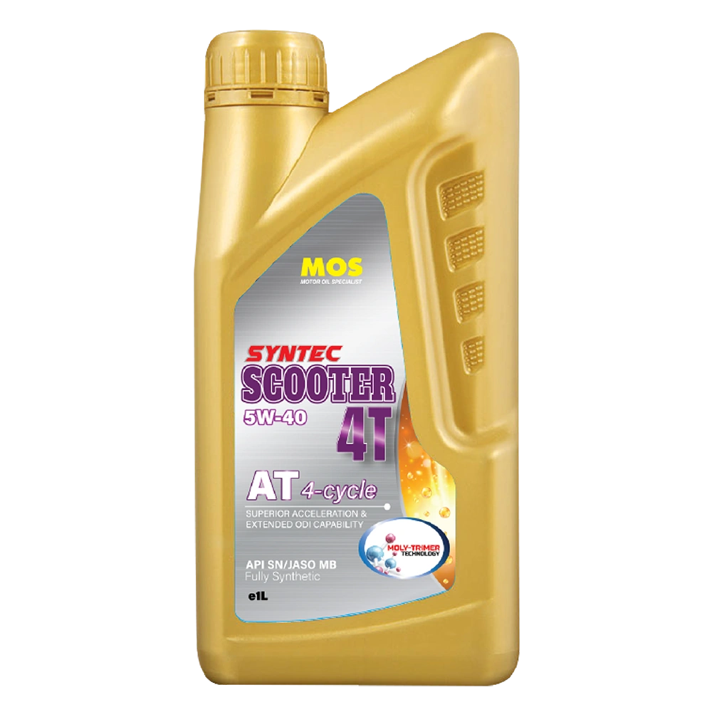 SYNTEC SCOOTER 4T SAE5W-40 is a fully synthetic product series for latest model of dry-clutch 4-strokes scooter motorcycles. It is formulated to meet performance classification of API SN Service Category and JASO MB frictional requirement. The products built on latest additive technology to provide exceptional engine protection against friction, wear & tear, thermal oxidation. SYNTEC SCOOTER 4T series exhibits extremely shear-stable oil film that giving least changes in oil viscosity despite of undergoing high temperature and high stress engine operation for long period.