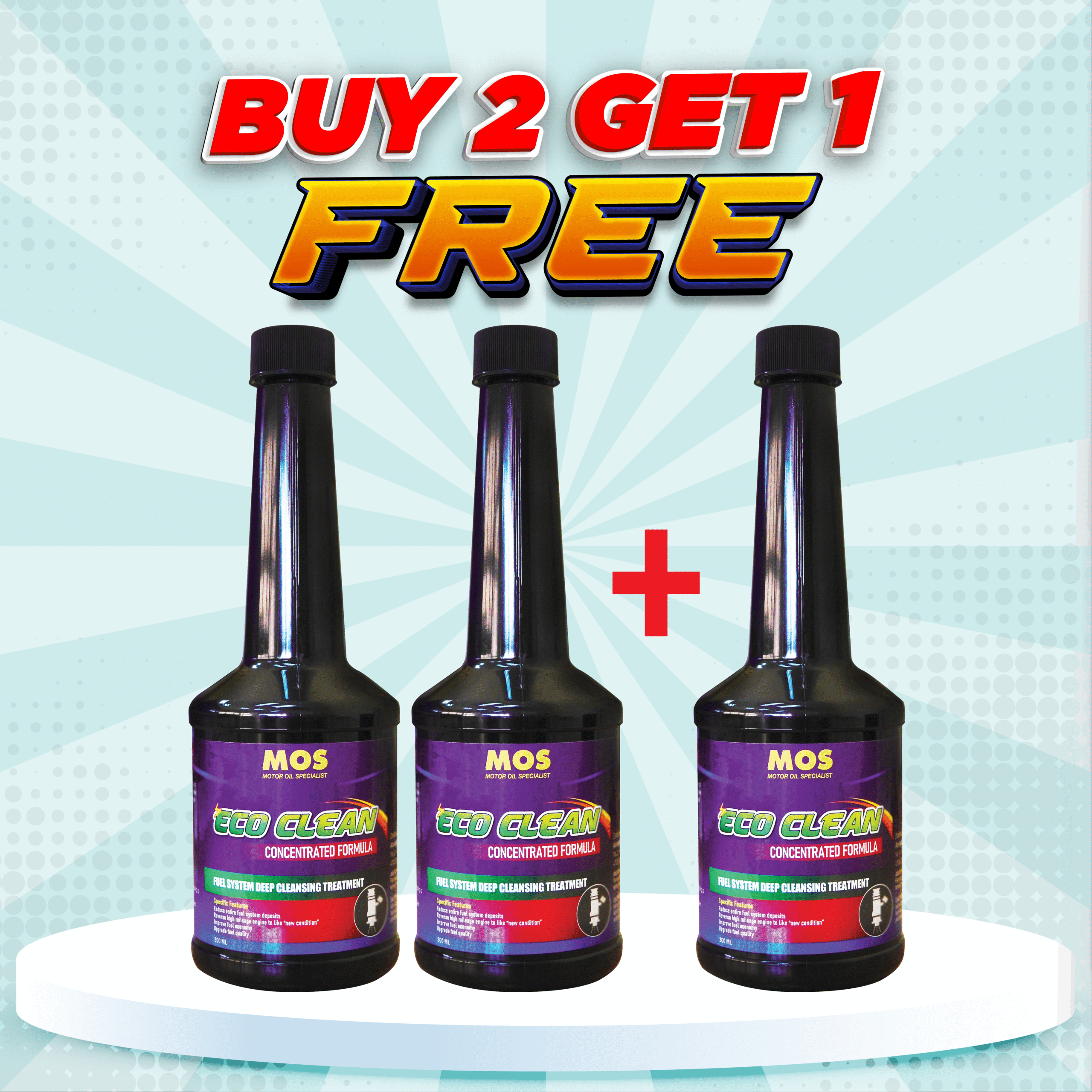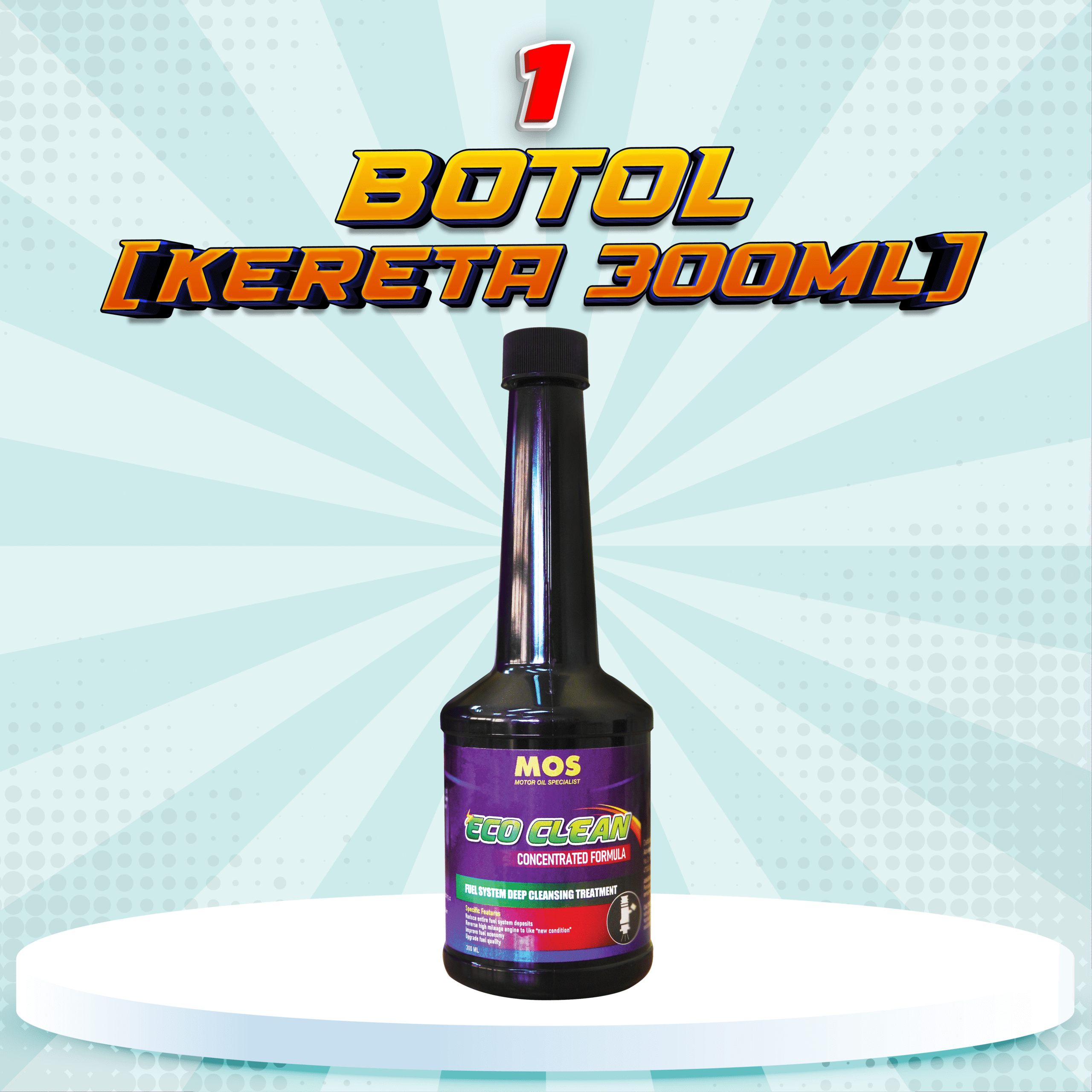 MOS ECO CLEAN ialah aditif detergensi bahan api premium yang memberikan pembersihan secara mendalam kepada sistem bahan api di dalam tangki minyak petrol.