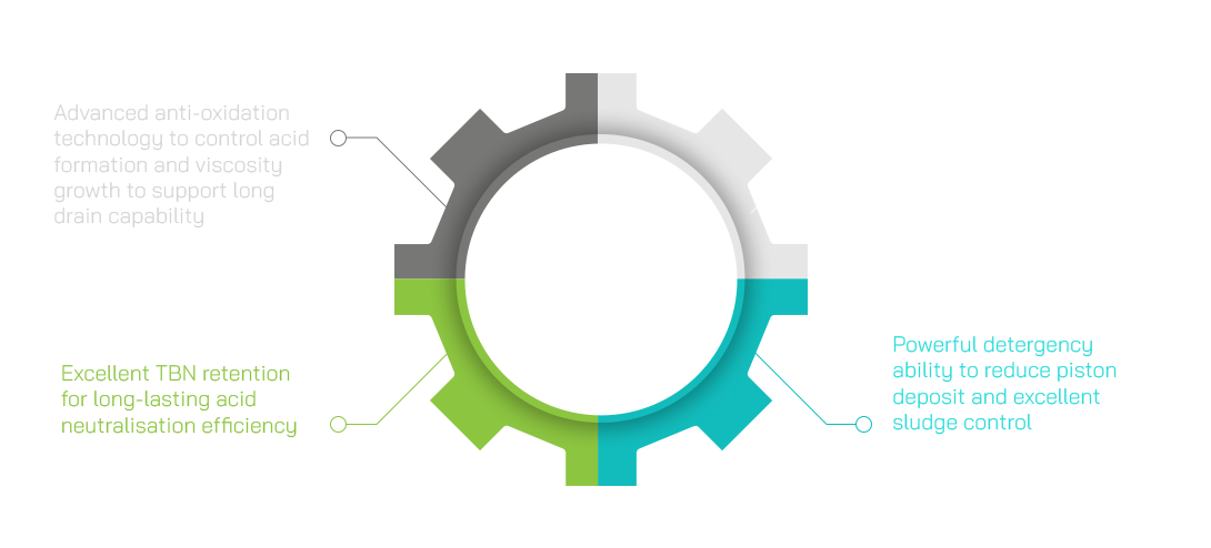 - Powerful detergent and oxidation resistance componentry to maintain engine cleanliness and slow down oil ageing rate